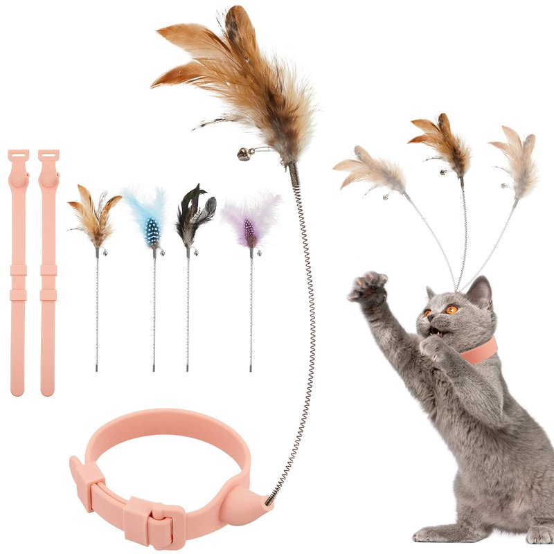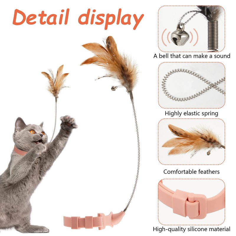 - Full of fun: the design of the cat collar is beautiful and cute; You only need to put the collar around the cat's neck and it can play by itself; The feathers have bells, which will make sounds due to the cat's movements, attracting the cat's attention; Your cat can spin and jump to play with the collar, which is full of fun