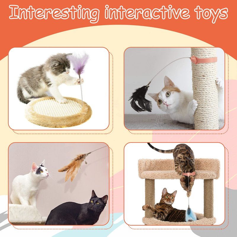 - Wide range of applications: these cat feather collars are practical; The collar can be worn around the cat's neck to make it play by itself, and if you don't have time to play with the cat, you can fix the collar on your ankle, so that you only need to walk the cat will be attract, or you can install it on cat trees, cat beds, cat climbing frame to enhance the interaction between you and your cat