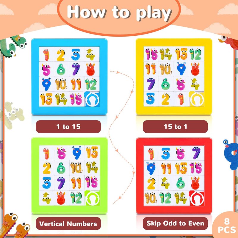 - You Will Receive: the package comes with 8 pieces plastic slide puzzles in 4 colors, and each puzzle measures about 2.76 x 2.76 x 0.2 inches/ 7 x 7 x 0.5 cm; Sufficient quantity and multiple colors can meet your needs of the whole family, and you can also share them with your friends