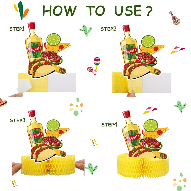 - Simple to assemble: these Mexican decor centerpieces can be assembled according to the pictures in just a few seconds, and then put it in your favorite display area to easily decorate your party, saving time and effort; They will add luster to your Mexican party and make a nice impression on your guests
