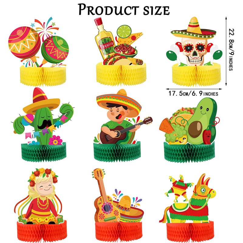 - Rich quantity and style: 9 pieces of Mexican honeycomb centerpieces with different styles are included in the package, which are the indispensable eye-catching party item for Mexican party; The right size makes these Mexican ornaments stand out without taking up too much space, and they will be favored and appreciated by everyone