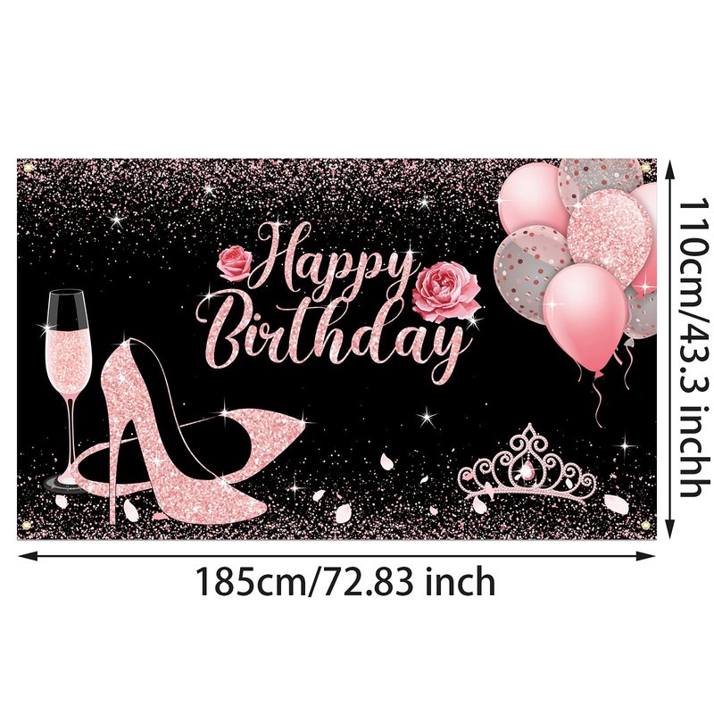 • Delicate and chic design: this fabric pink birthday background banner is designed with [Happy Birthday] letters, high-heeled shoes, balloons, wine glass, rose, crown, glitter confetti, and so on, attractive and charming, filled with a pleasant atmosphere, leaving a good impression on your guests