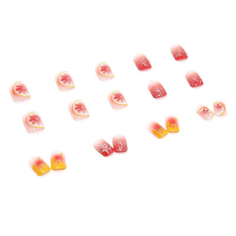 Summer Press on Nails Short Square Fake Nails Pink Gradient Full Cover False Nails with Yellow Lemon Designs Glitter Glossy False Nails with Glue Artificial Acrylic Nails for Women Girls 24 Pcs