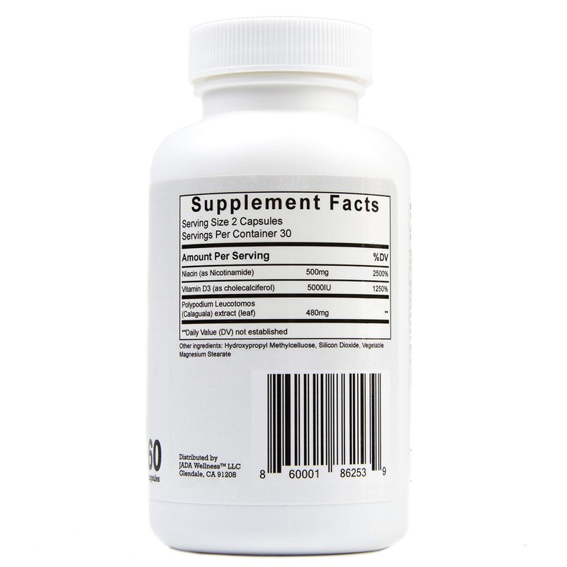 - ✅HIGHEST DOSE OF POLYPODIUM LEUCOTOMOS PER SERVE - 480mg; which promotes skin health against free radical damage! Plus 500mg Vitamin B3 (non-flush) - two of the most important vitamins to help promote skin health! And VITAMIN D3 5000IU