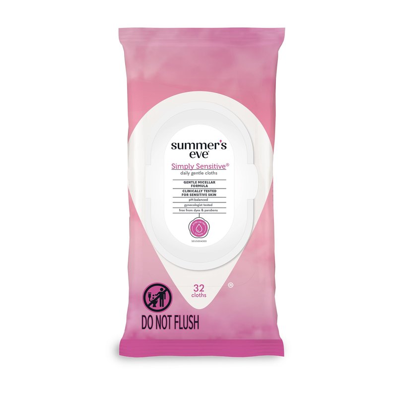 - Summer’s Eve Simply Sensitive Daily Gentle Feminine Wipes removes odor-causing bacteria