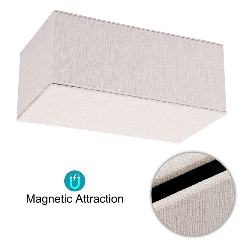 - Magnetic Bottom - The bottom plate of the tissue box holder is securely closed by a magnetic closure, so you can easily put tissues or tissue box in, and without worrying about the tissues or tissue box will fall through when you pick it up.