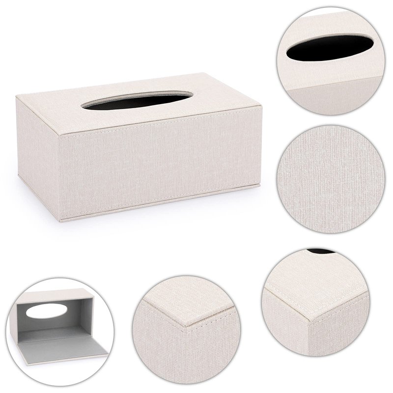 - High Quality - The attractive tissue box cover is made of high quality MDF(inside) + Linen (outside) materials; It's sturdy and durable to keep the tissue box from being crushed; The stitching is not only even and neat, but also contrasts nicely with the beige material.