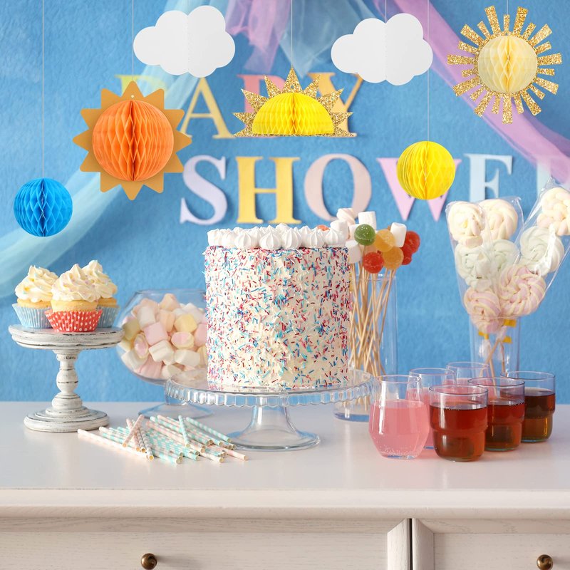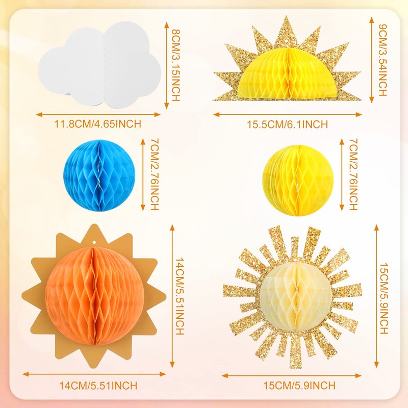 - What You Get: we will provide you with a set of sun birthday decorations, including 5 sunshine hanging decorations and 6 clouds for ceiling, 3D effect will add more adorable atmosphere to your whole decorations