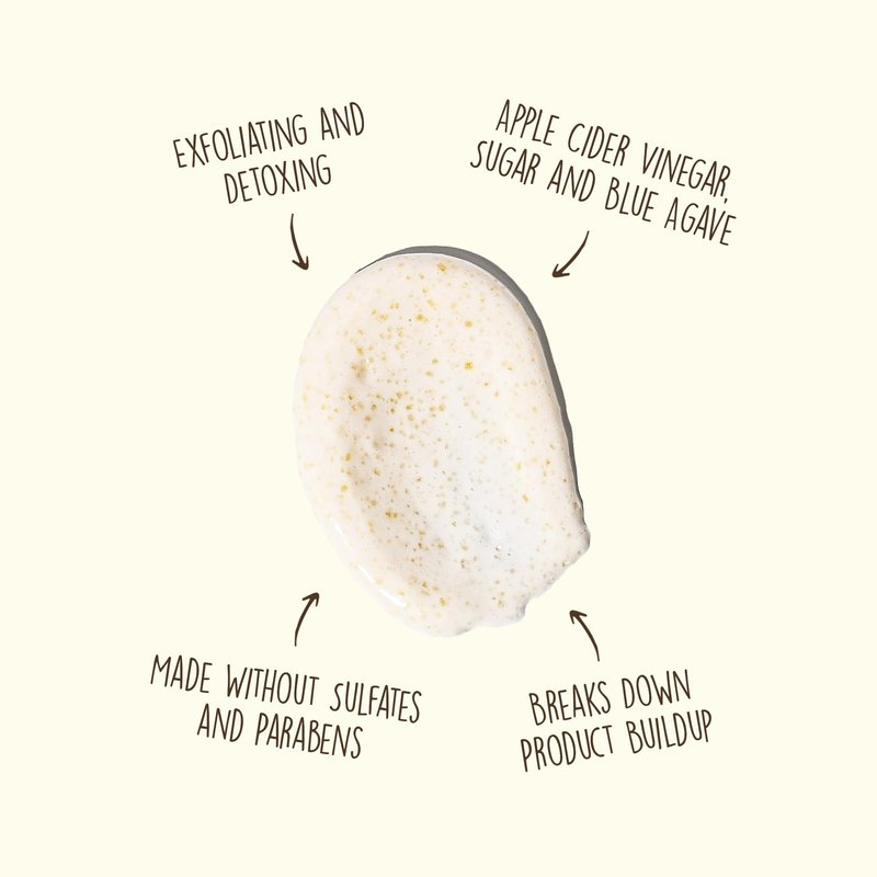 - REVITALIZING DETOX SCALP SCRUB. Made with Apple Cider Vinegar, Sugar, and Blue Agave, our sulfate-free detox shampoo works to gently cleanse and exfoliate our scalp while also helping break down product buildup, dirt and excess oil.