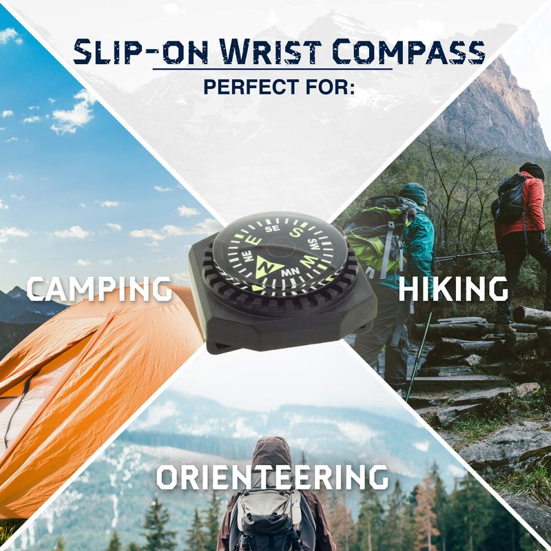 - PERFECT BACK-UP MAP COMPASS - Use Slip-On Wrist Compass as a back up to your primary compass to ensure you are headed in the right direction. One of the necessary accessories for outdoor, hiking, camping, or survival gear.