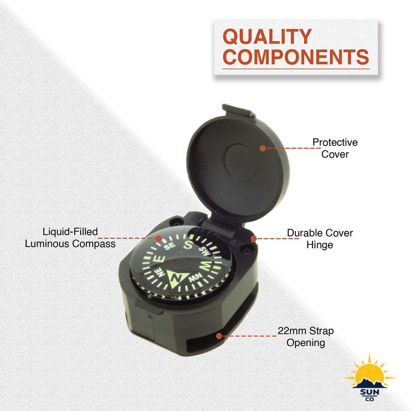 Sun Company Wrist Turtle - Armoured Wrist Compass with Closing Cover | Easy-to-Read Compass for Watch Band or Paracord Survival Bracelet