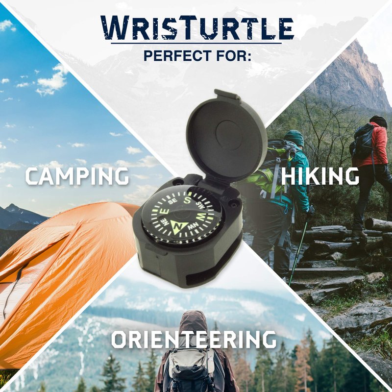 - PROTECTIVE HINGED COVER -WristTutle's hinged cover keeps compass protected and helps to prevent glare, making it easy to read. Its tactical design makes it a perfect wilderness accessory for hiking, camping, backpacking, or any outdoor activity you can think of!
