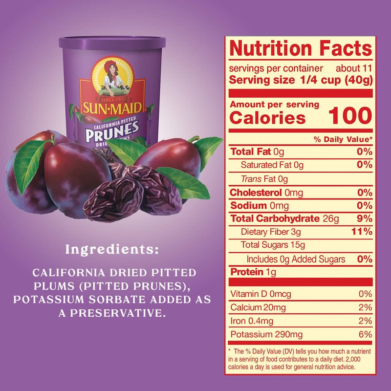 - GREAT VALUE: This multi-pack includes 2 16 oz. containers of SunMaid pitted prunes for one great price! We also include a code to download of our e-book called, "Recipes For Prune Lovers".