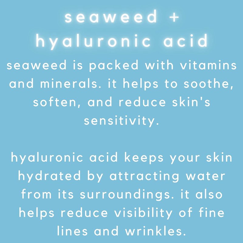 - SEAWEED is full of humectants that draw and lock in moisture from the air, and is also loaded with Vitamin E which helps to improve skin tone and health.