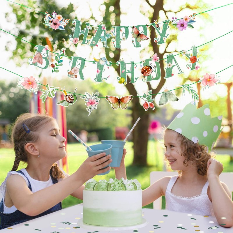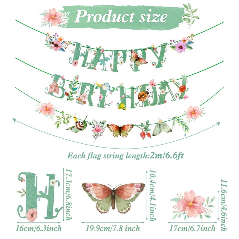 - If you’re on the fence & having a garden, flower, or butterfly theme birthday, you need this green banner to make a huge hit in your life, which will make your party a celebration worth remembering.