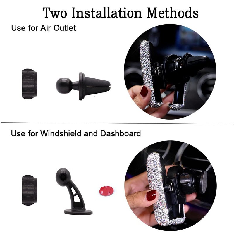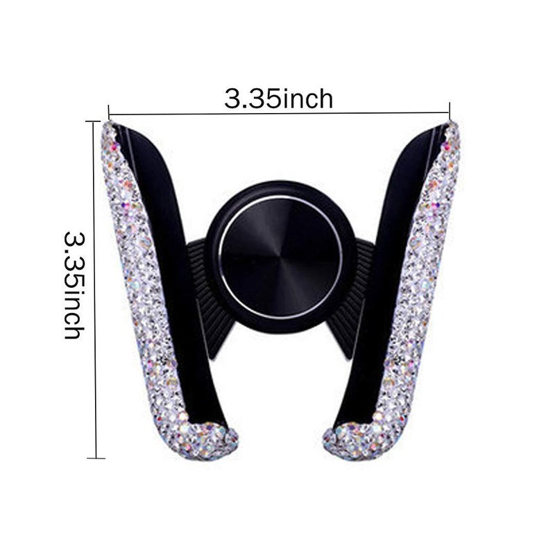 • [Mini Design]Rhinestone phone holder is small and compact, and will not block the line of sight during driving. The size is 3.35 inches / 3.35 inches (height * width), suitable for most general smart phones and GPS devices.