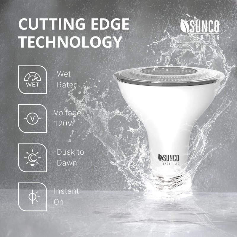 - ✅ DUSK TO DAWN - Sunco's PAR30 LED Dusk to Dawn Bulb powers on automatically at sunset. Leave the power on to activate the sensor. The photocell sensor detects light levels to act as an automated night light.