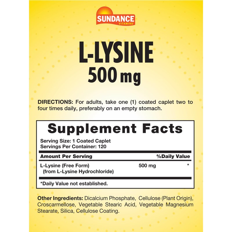 Sundance L-Lysine 500mg Caplets | 120 Count | Free Form Amino Acid | Vegetarian, Non-GMO, and Gluten Free Supplement
