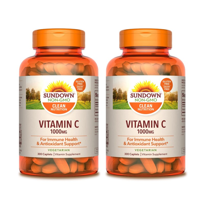 Sundown Naturals Vitamin C 1000mg for Immune Support and Antioxidant Health, 300 Caplets (Value Pack of 2)
