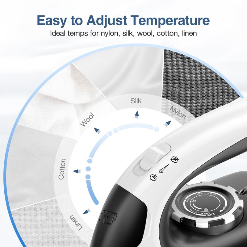- [Nonstick Ceramic Soleplate]The non-stick ceramic soleplate in this portable travel iron heats up quickly and is more durable than stainless steel. It glides effortlessly over delicate fabrics, making ironing smooth and efficient. The front arc design is perfect for tackling small areas like collars, plackets, and buttons.