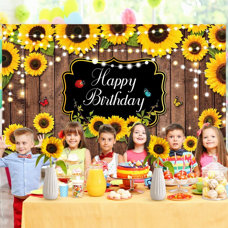 Sunflower Happy Birthday Party Decorations Rustic Wood Photography Butterfly Sunflower backdrop Banner Background for Indoor Outdoor Birthday Party Baby Shower Decor Supplies