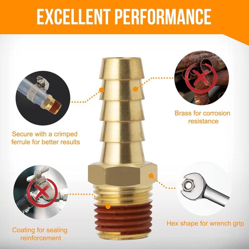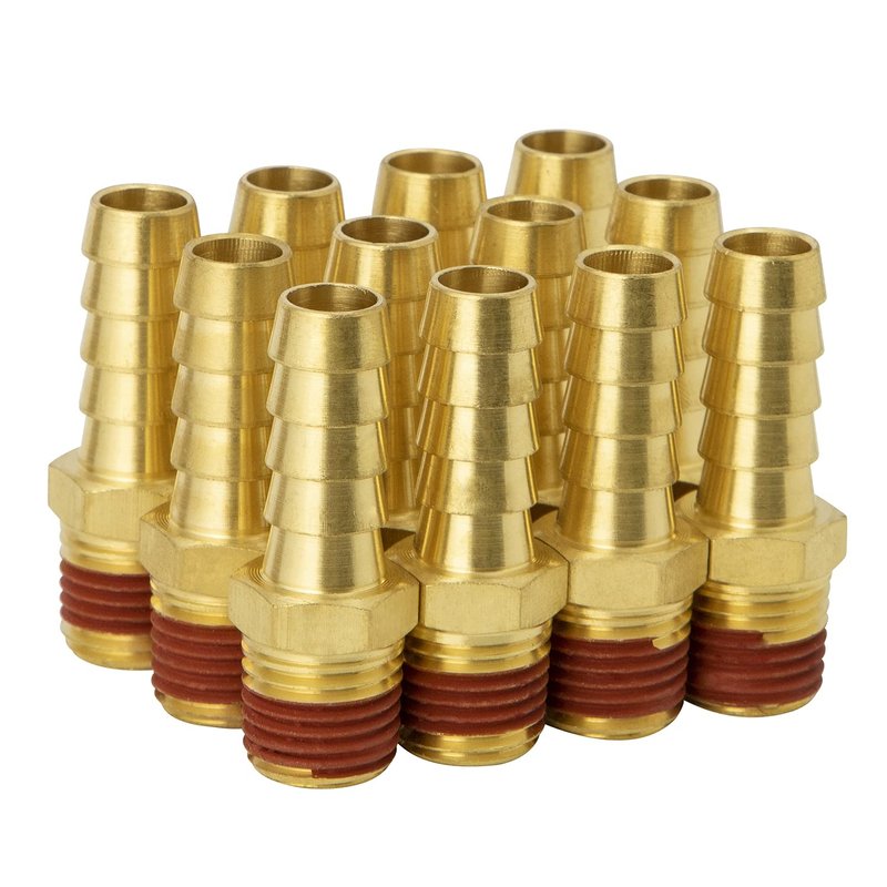 - 【PACKAGE INCLUDE】: 3/8'' barb X 1/4'' NPT male brass air hose barb fittings with sealant × 12; Hose clamp × 12