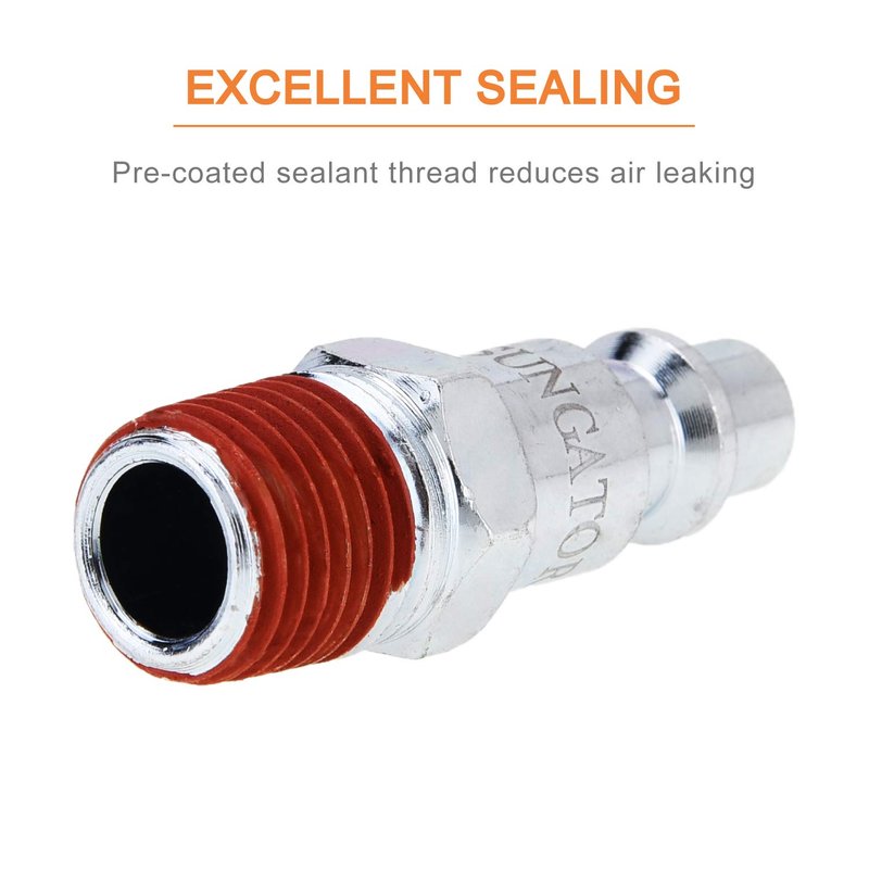 - 【PRE-COATED THREADS】: Pre-coated threads ensures secure hold for these air tool fittings and also can effectively prevent air leakage, save the money buying tape, and also the time of wraping the tape, making work more efficient.