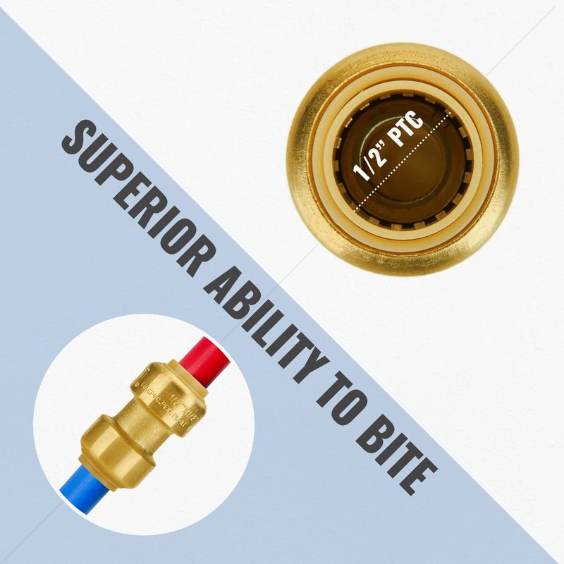SUNGATOR Fittings 1/2 Inch, Pushfit Plumbing Fittings 1/2 Inch, Push 1/2 Inch Coupling Fittings, No Lead Brass Push to Connect Fittings for Pex, Copper, CPVC, with 1 Disconnect Clip, Pack of 12