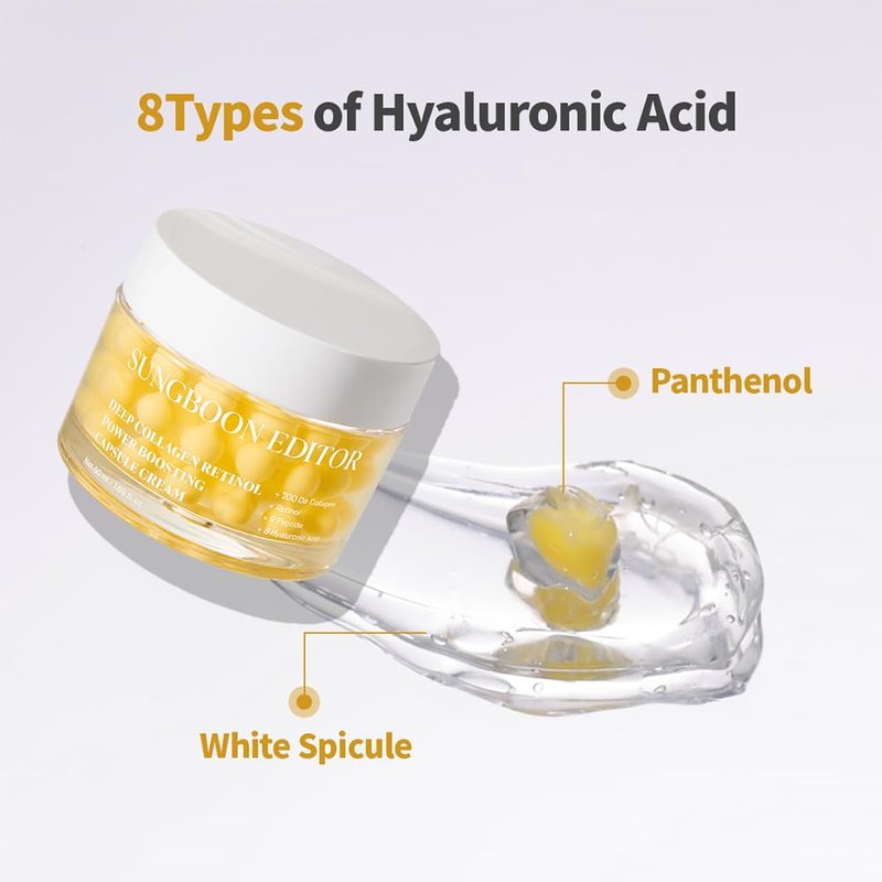 SUNGBOON EDITOR Deep Collagen Retinol Power Boosting Capsule Cream - Retinol Night Cream for Face with Collagen | Anti-wrinkle Firming Care | Hyaluronic Acid for Moisturizing | Korean Skin Care