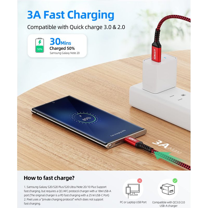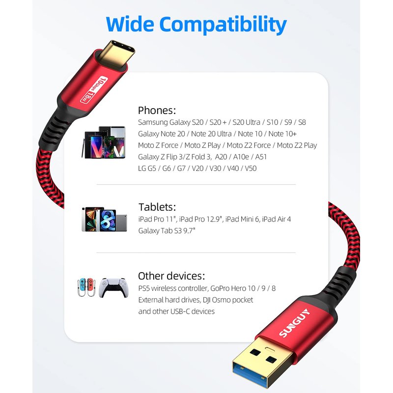 - 10Gbps Data Transfer: SUNGUY USB 3.1 Gen 2 cable supports super speed data transmission up to 10Gbps, transfer HD movies, songs, file or photos in seconds. Backwards compatible to USB 3.0 and 2.0; DOES NOT support video output.