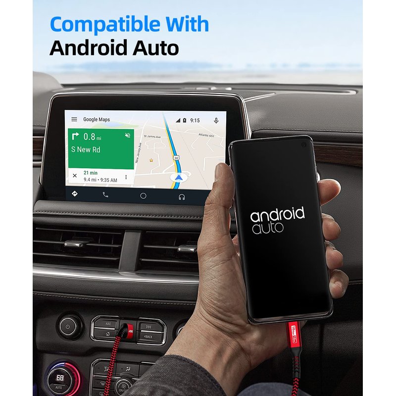 - Works with Android Auto: This android auto cable can quick-charge your USB-C devices at up to 3A safe charging power. 56KΩ pull-up resistor provides a safer charging current, and protects your devices from damage. Works great with your car's Android Auto.