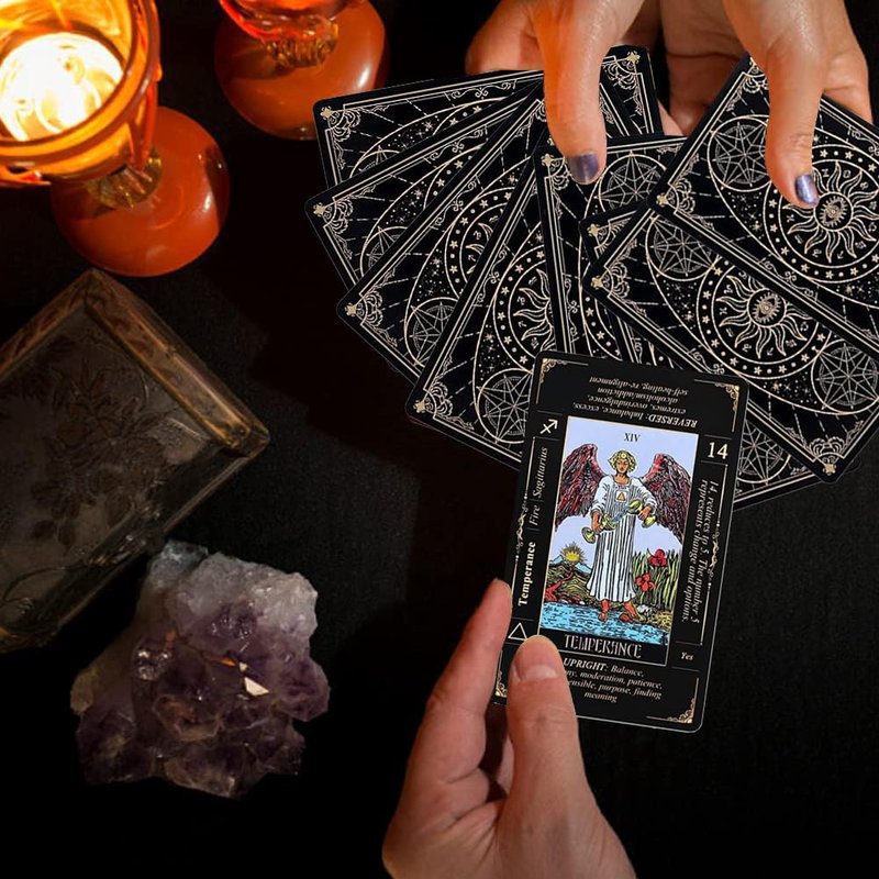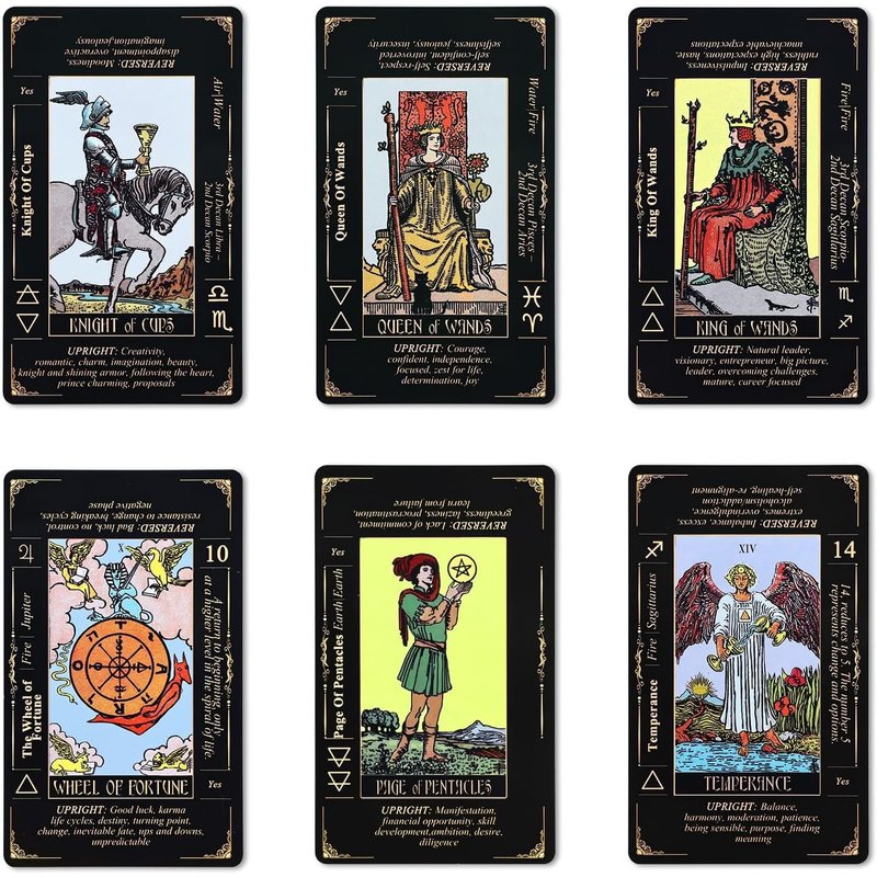 1.There are 78 Tarot cards,Tarot Cards for Beginners with Meanings on Them, Keywords, Planet, Zodiac, Element, Yes or No, Very suitable for beginners to learn and explain memory.