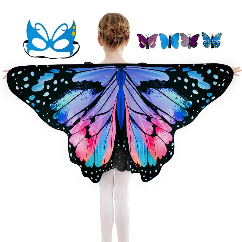 • 【Fairy Butterfly Wings Sets】Fairy butterfly wings set for girls includes 1* Butterfly Wings+4* Butterfly Hair Clip Small+1* Colorful butterfly mask;Fairy Butterfly wings for girls: Lenght 65cm/25in Width 120cm/47in; Available in Orange, Pink, Purple, Iridescent, Blue Pink, Powder Blue, and Star Blue.Suitable for 4-9 years old girls, erfect for butterfly party favors gifts.