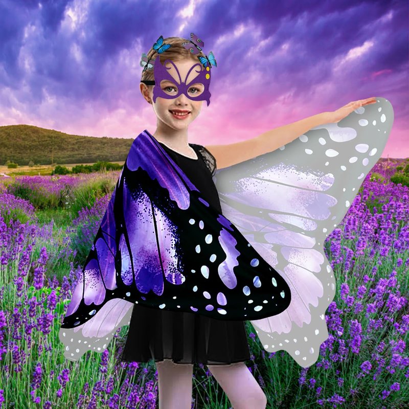 - 【Unique Design】24 years newest butterfly costume kids set consists of butterfly wings and Butterfly Hair Clip Small in the set features; crafted from soft wearable comfortable and breathable fabrics; When perfectly matched with the colorful face mask in the set accessories, it will surely be loved by your kids and become the coolest and brightest focal point in parties and role plays.