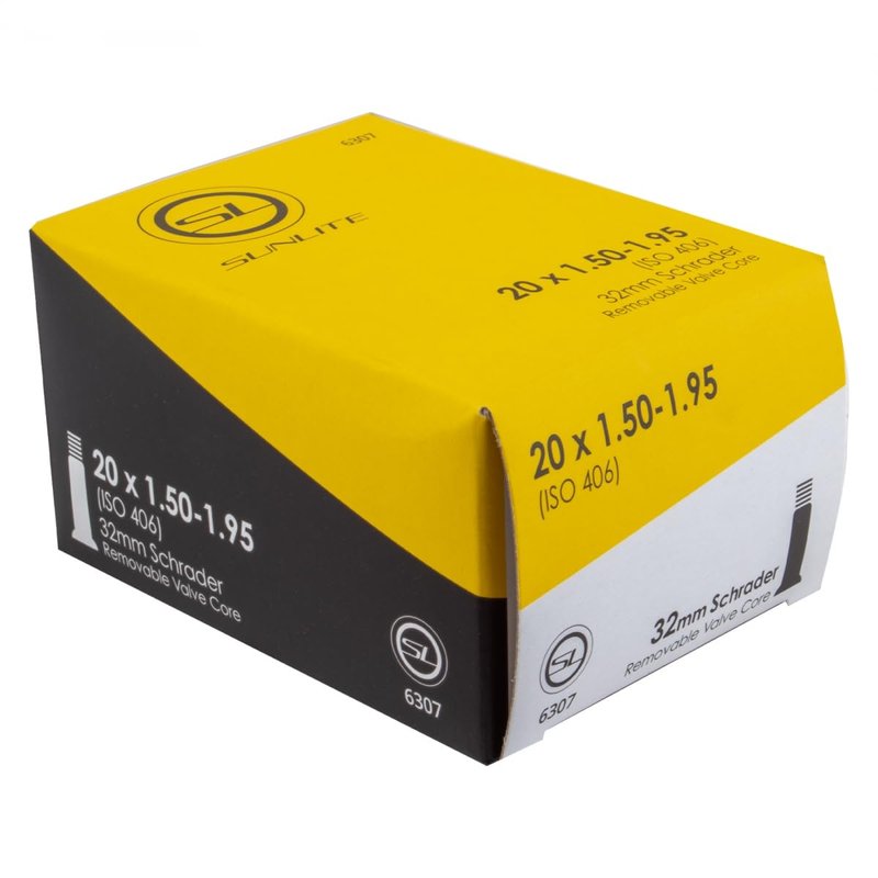 Tube, 20 x 1.50-1.95 32mm SCHRADER Valve. Replacement bicycle inner tube for any bicycle tire with the same tire dimensions (20"x1.50" through 20x1.95"). Be sure to verify the valve type and length as well.