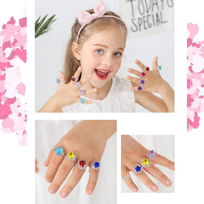 - 【Unique design】Designs of 36 kids play rings that will make your daughters mesmerized. Usage of vibrant colors and lovely designs, shown as picture.