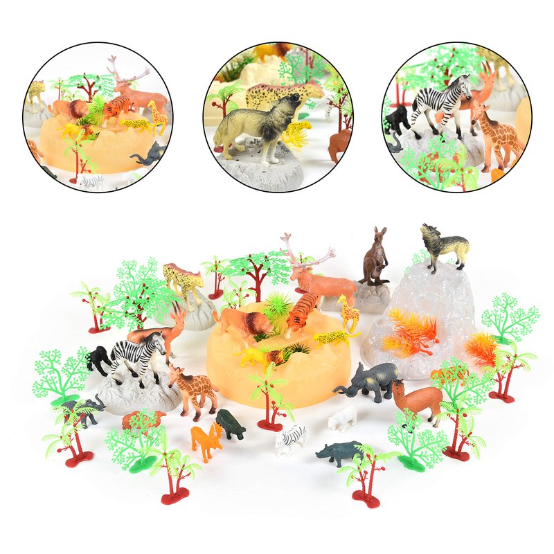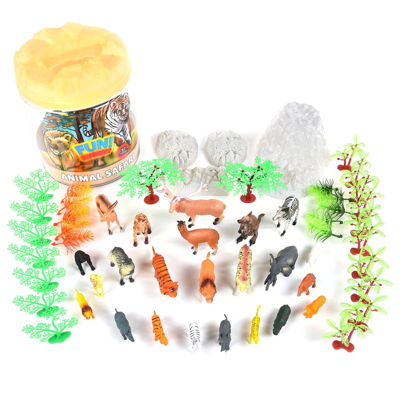 - 57 PIECES: This playset includes lions, tigers, elephants, zebras, giraffes, kangaroos and many other species! The different shaped trees, plants and boulders help to create a safari world.