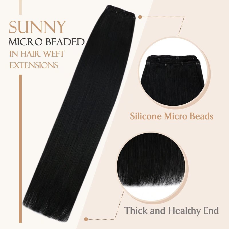 Sunny Hair Beaded Weft Hair Extensions Human Hair 50G Micro Bead Weft Hair Extensions Real Human Hair Straight Weft Hair Extensions with Micro Beads Easy Weft Jet Black 24 inch