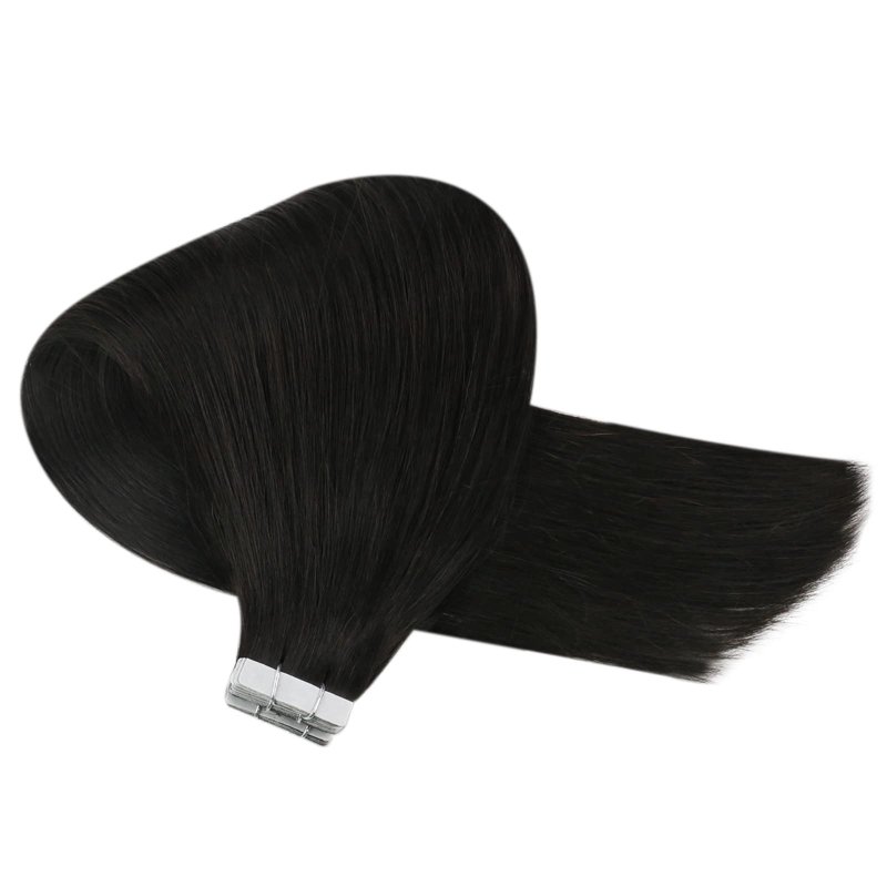 Sunny Hair Tape in Extensions Black Tape in Human Hair Extensions Natural Black Invisible Tape in Hair Extensions Black Hair Seamless Tape in Extensions Human Hair Black Hair for Women 20pcs 50g 22in