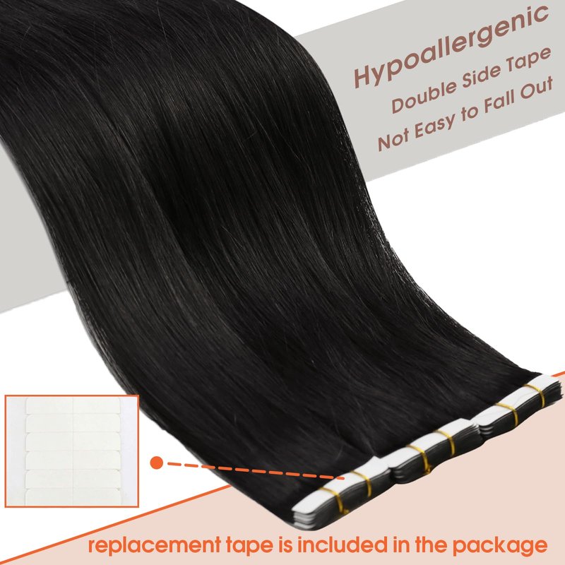 - Invisible and Safe: Tape in hair extensions are popular semi permanent hair extensions. It is light in weight and gentle to natural hair and scalp. Plus, our tape is replaceable and each pack comes with a replacement tape. With good hair care, you can reuse the extensions more than one time.