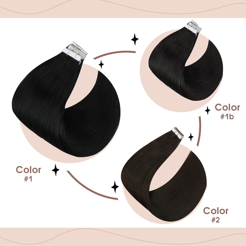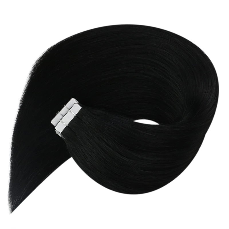Tape in Hair Extensions Human Hair Jet Black: Sunny tape in hair extensions is hand sewed into a clean skin base and then attached to the American White Tapes. Whether it is the collection of raw materials to the production process, we carry out strict quality control.