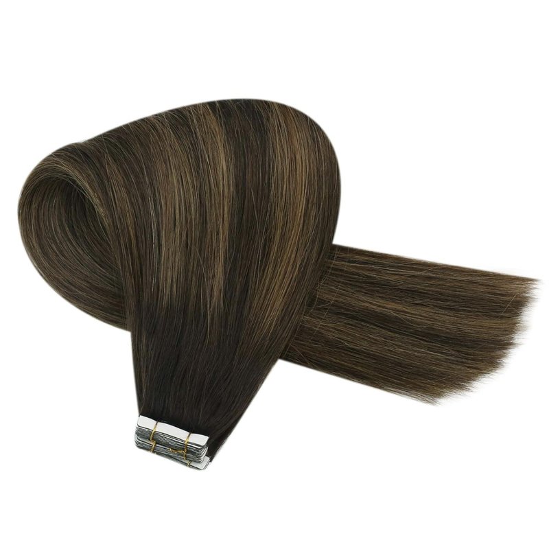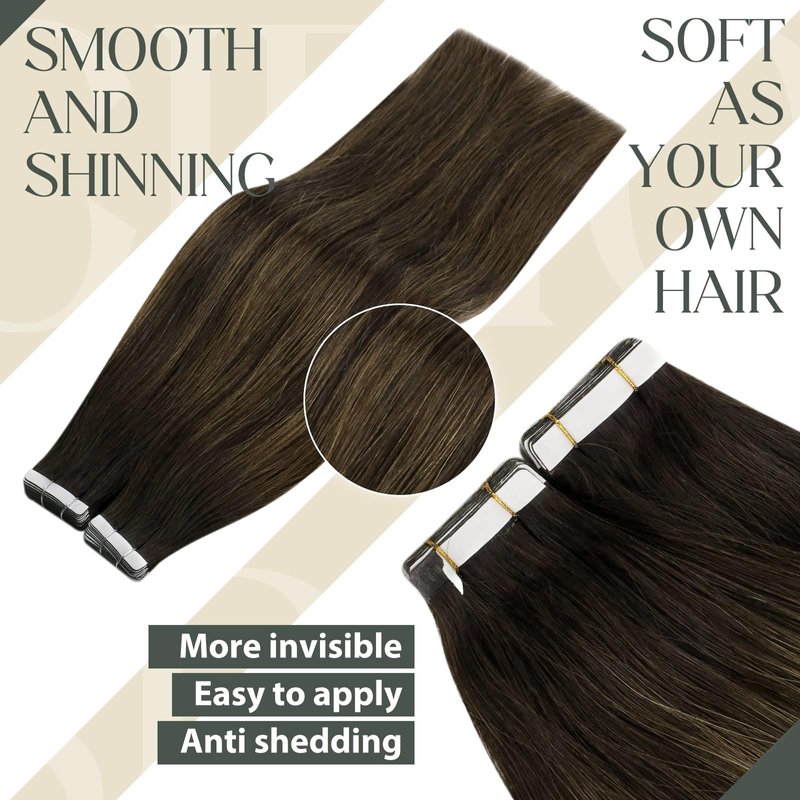 Sunny Hair Tape in Extensions Straight Skin Weft Tape in Hair Extensions Invisible Tape in Hair Extensions Human Hair 20Pcs Hair Extensions Real Human Hair Darkest Brown Balayage Medium Brown 18inch