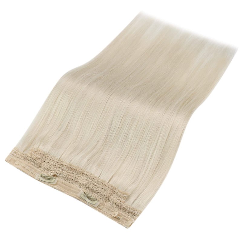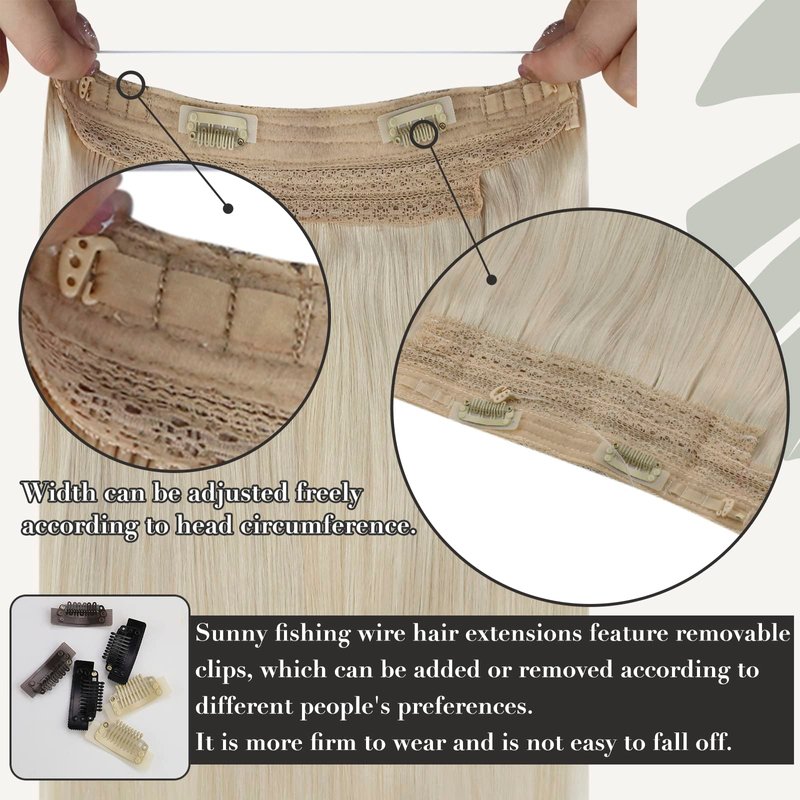 Sunny Wire Human Hair Extensions 100g Platinum Blonde Human Hair Wire Extensions Blonde Fishing Line Hair Extensions Real Human Hair Straight Wire Hair Extensions for Long Hair 20inch