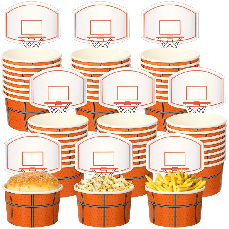 - Creative Basketball Theme Design: the basketball hoop snack cups are designed with basketball elements, mainly orange and yellow, bright and vibrant, with a lovely net, simulate what you would shoot at the basket if you were playing basketball, creative and novel; Most kids can't resist these cute paper snack cups