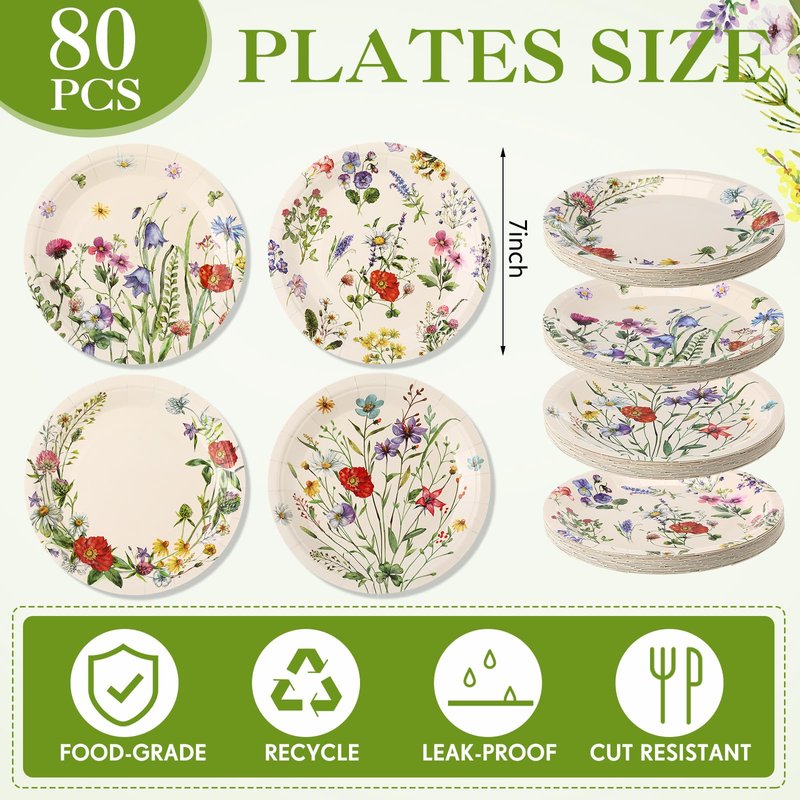 - Quantity and Size: with 80 wild floral theme plates included in the set, each measuring about 7 inches/ 17.8 cm, you'll have plenty for your event; The 4 different designs, with 20 of each, ensure that there's a variety to suit your needs