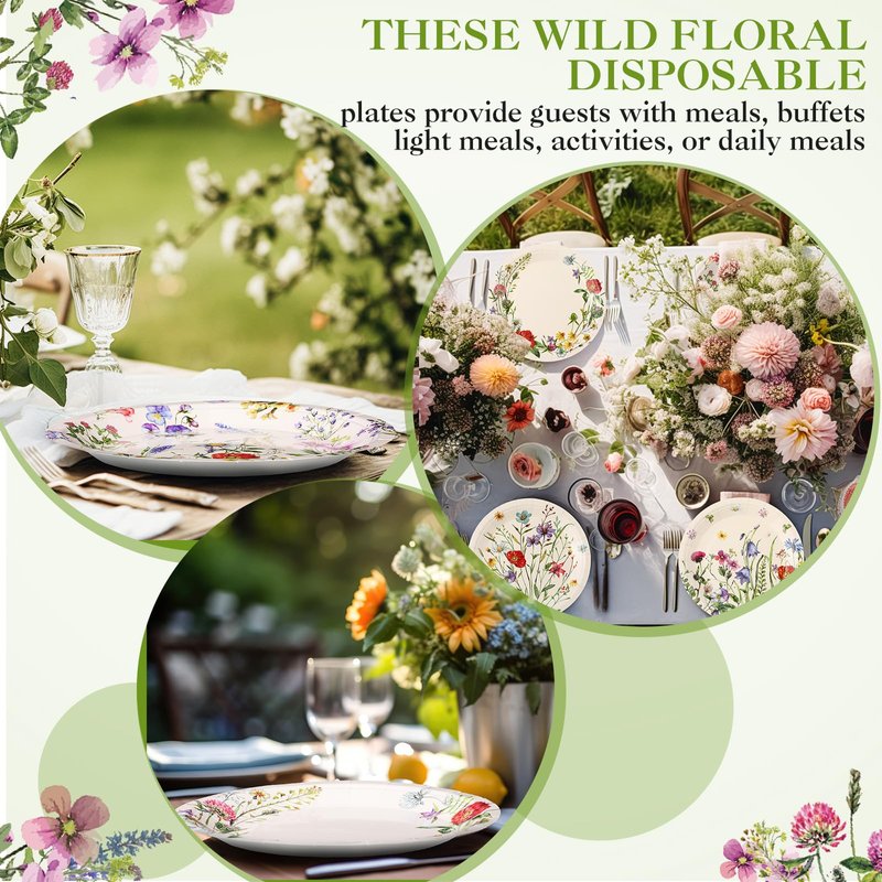 - Disposable and Practical: the paper plate is made of 300 grams of white cardboard material, reliable quality, thick and solid, no odor, not easy to fade or break; These wild floral plates are convenient and practical for one time use, saving you the hassle of washing up after the event