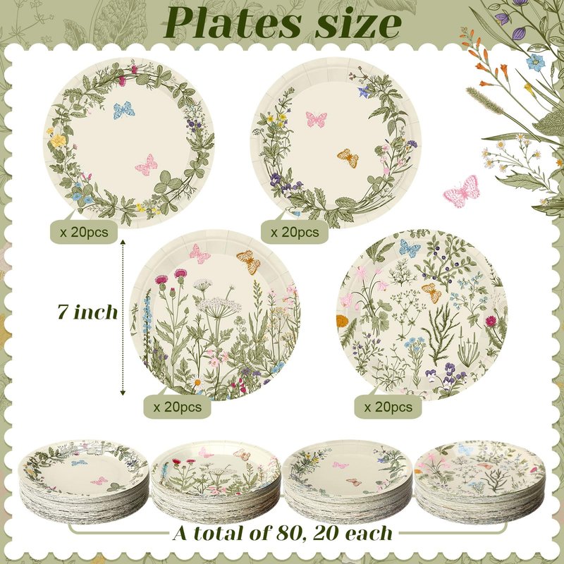 - Quantity and Size: with 80 wild floral theme plates included in the set, each measuring about 7 inches/ 17.8 cm, you'll have plenty for your event; The 4 different designs, with 20 of each, ensure that there's a variety to suit your needs