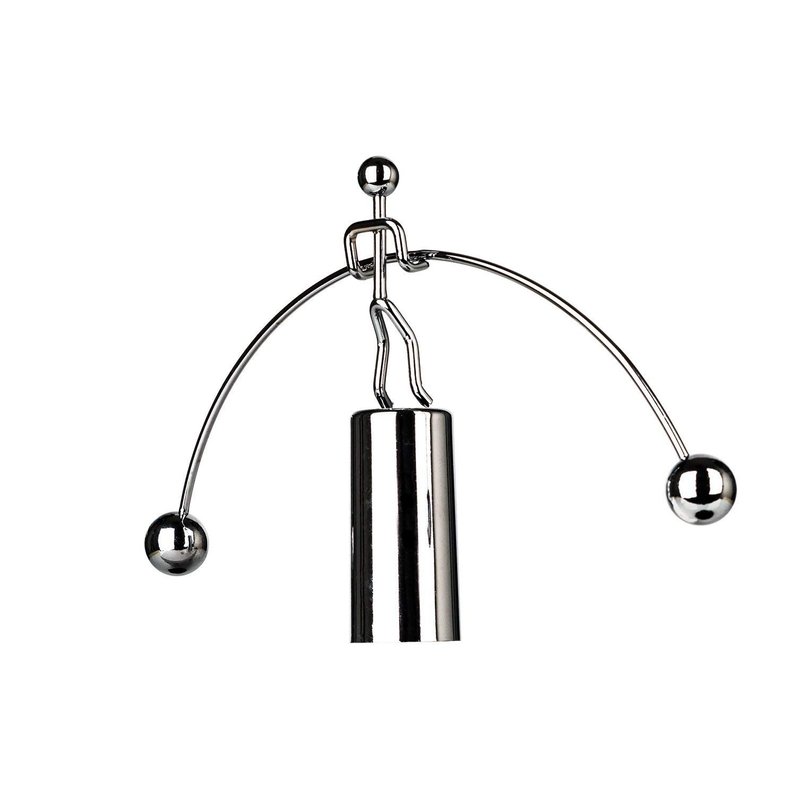 Balancing toys were popular in the 19th century. Dating back to ancient China and India, where they were most often carved from soft wood, the western balancing toys were traditionally made from tin or metal. Illustrations of balancing toys can be found in educational literature from the 18th century. The physics governing the movement of such toys intrigued and amazed people. Balance toys came in various forms, and our particular shape is traditionally.