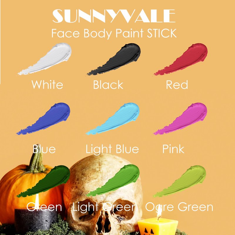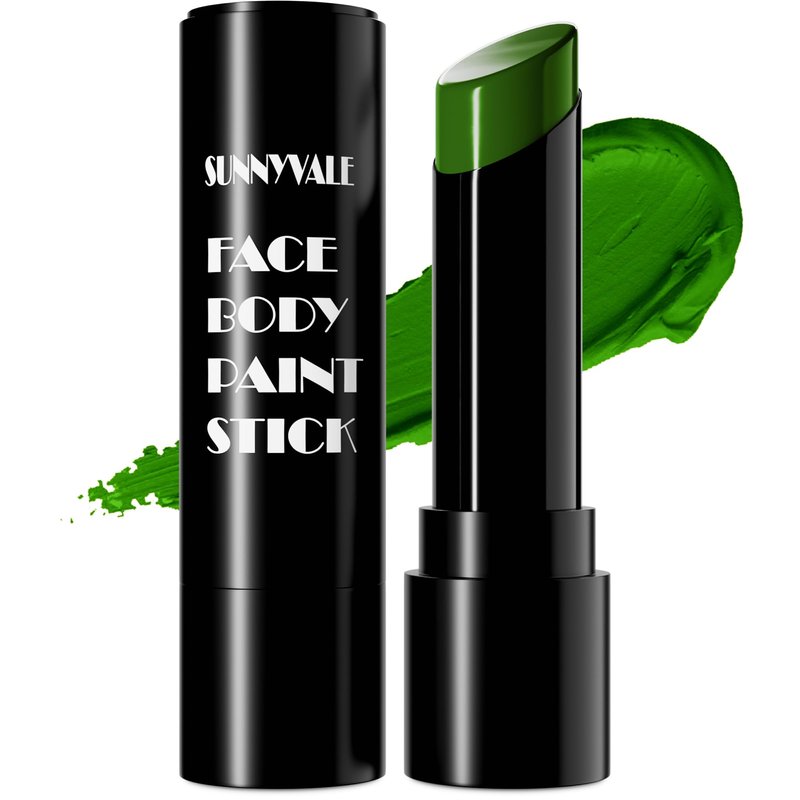 SUNNYVALE Halloween Wicked Witch Green Face Body Paint Stick Cream, Dark Green Eye Black Football for Sport Accessories, Hypoallergenic Grease Foundation Cosplay Hulk Camo Hunting Painting Makeup
