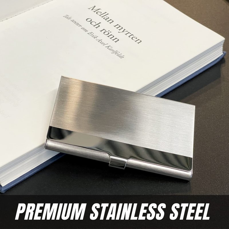 SunplusTrade Business Card Holder for Men and Women (Slim Minimalist Design Case, Stainless Steel Metal, Fits 18 Business Cards in Pocket)